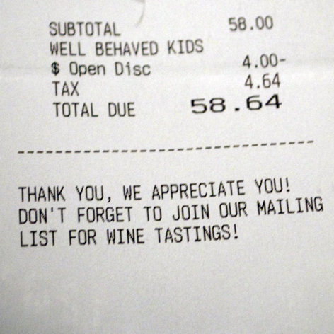 It wasn’t until King got home that that she noticed a $4 “well behaved kids” discount on her receipt to cover the dessert.