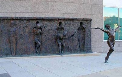 ” A 20 feet long, 8 feet high sculpture called Freedom, is currently located in front of the GSK World Headquarters in Philadelphia, PA. In 2000, sculptor Zenos Frudakis created it around our universal need to break free from a situation, be it an internal struggle or an adversarial circumstance.”