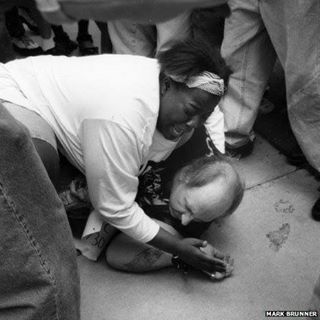 She covered his body with her own, screaming for the mob to stop the violence. They listened and, in tears, she held the racist man in her arms. The man that hated her for what she looked like, and nothing else.