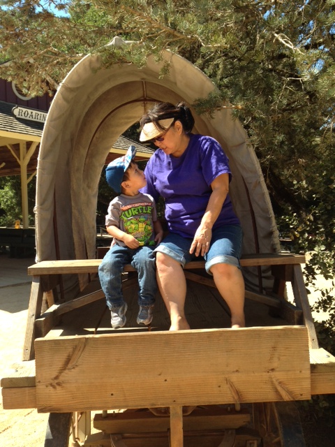 Thomas and Mama on covered Wagon Aug 9 2014