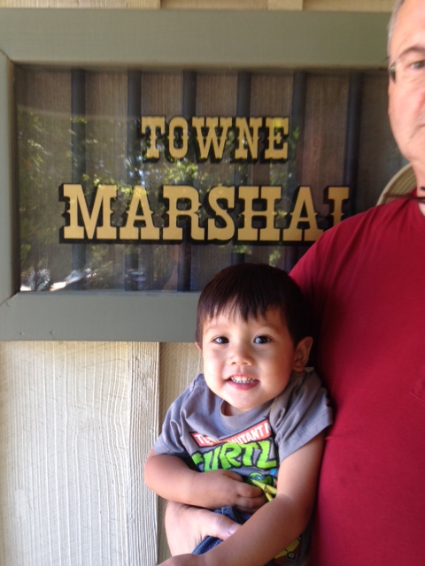 The train station is in a small “town”. On the way out we saw the “Towne Marshall’s Office.” Since our surname is Towne we took a photo of “Towne Marshall Thomas.”