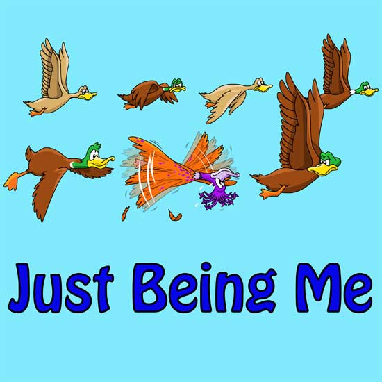 The odd-looking duck you see is none other than Wilbur Mallard Duck, star of The Duck Who Flew Upside Down. I like the illustration and its message and plan to have a T-shirt made with both proudly displayed on the front of it.