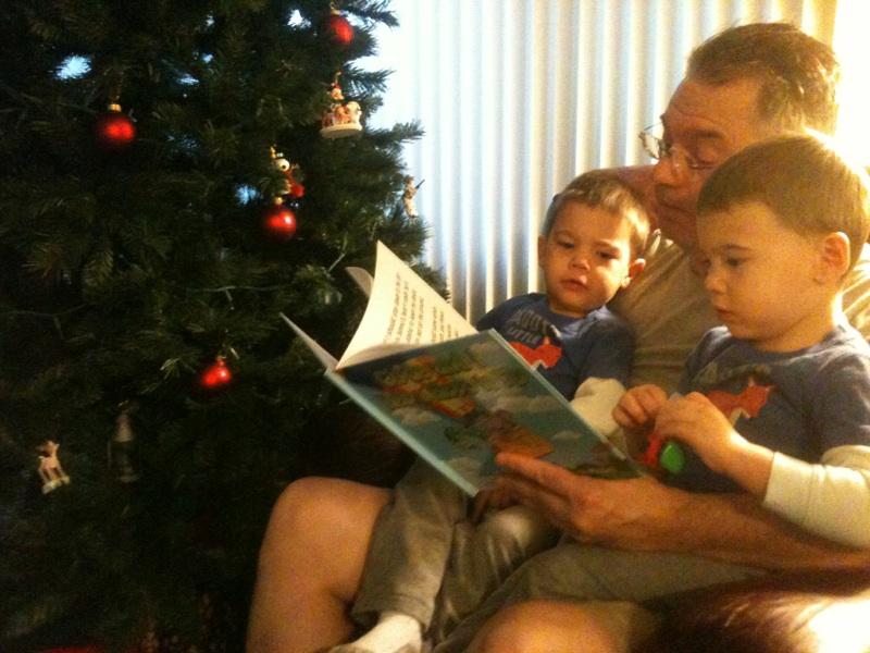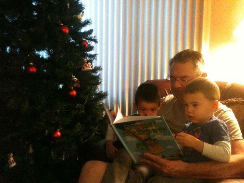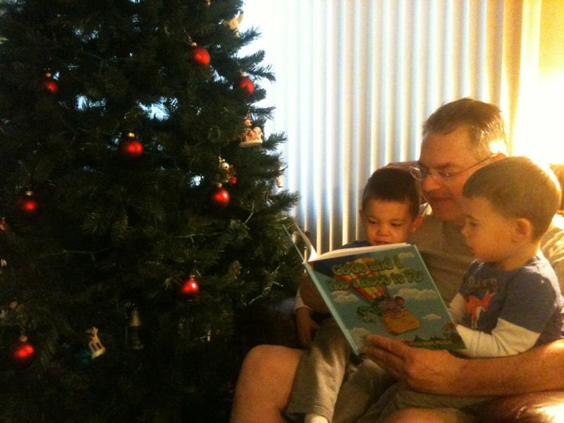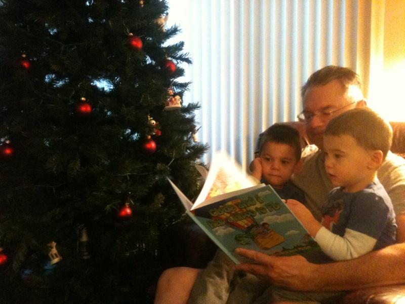 Kristi snapped some shots of Alex, Zach, and me reading what Alex calls “The Purple Hippo Book.”