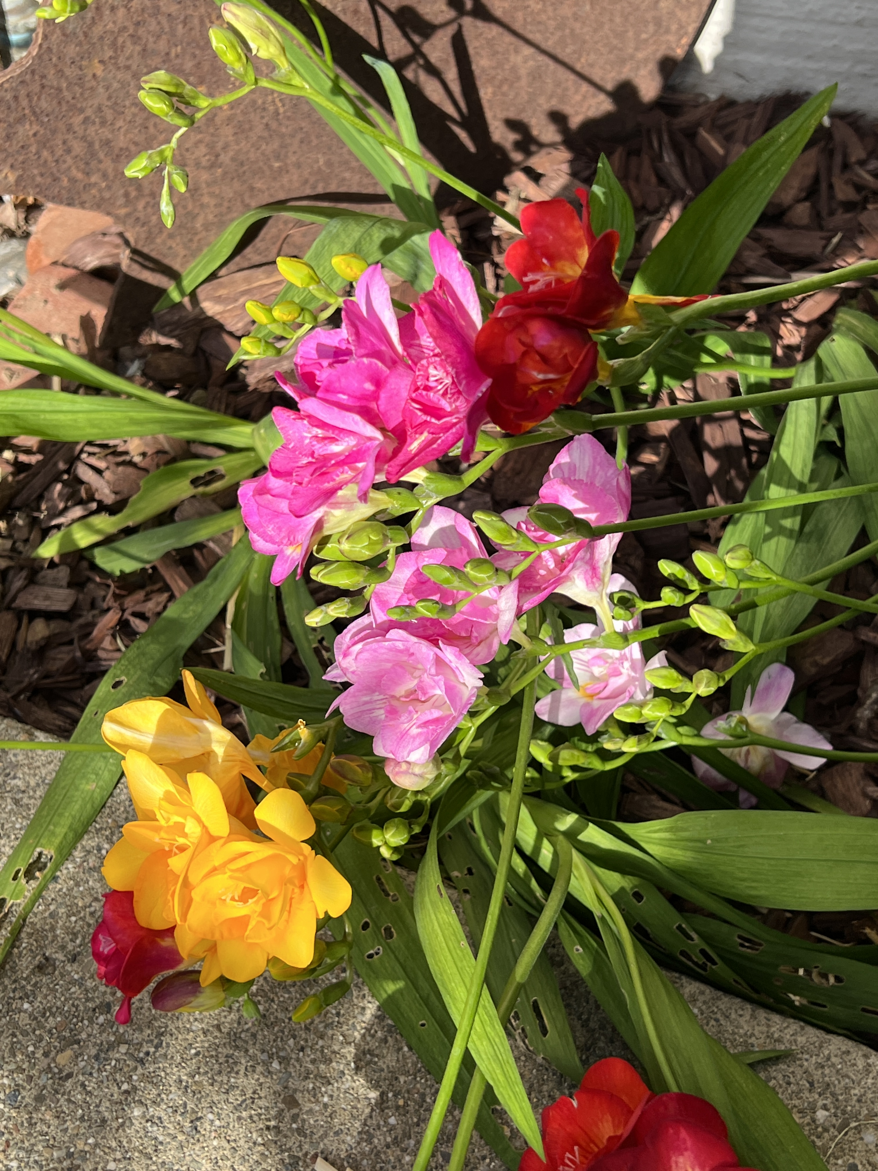 How wonderful. We call them Freesias here and they have an amazing scent. They are my favourites. We only have them here in Flower bouquets aroud May /June often.