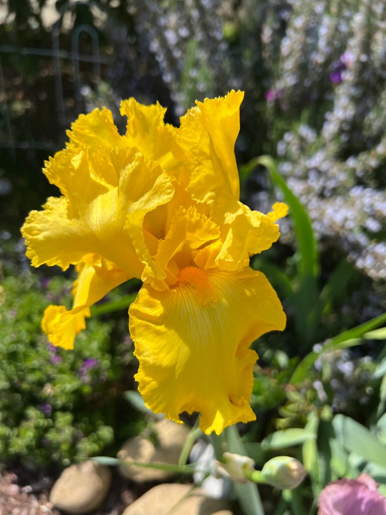 Your tall Iris is stunning and does help to brighten your day. Have you thought of photography as a hobby? Your photos are in good focus and composition.
